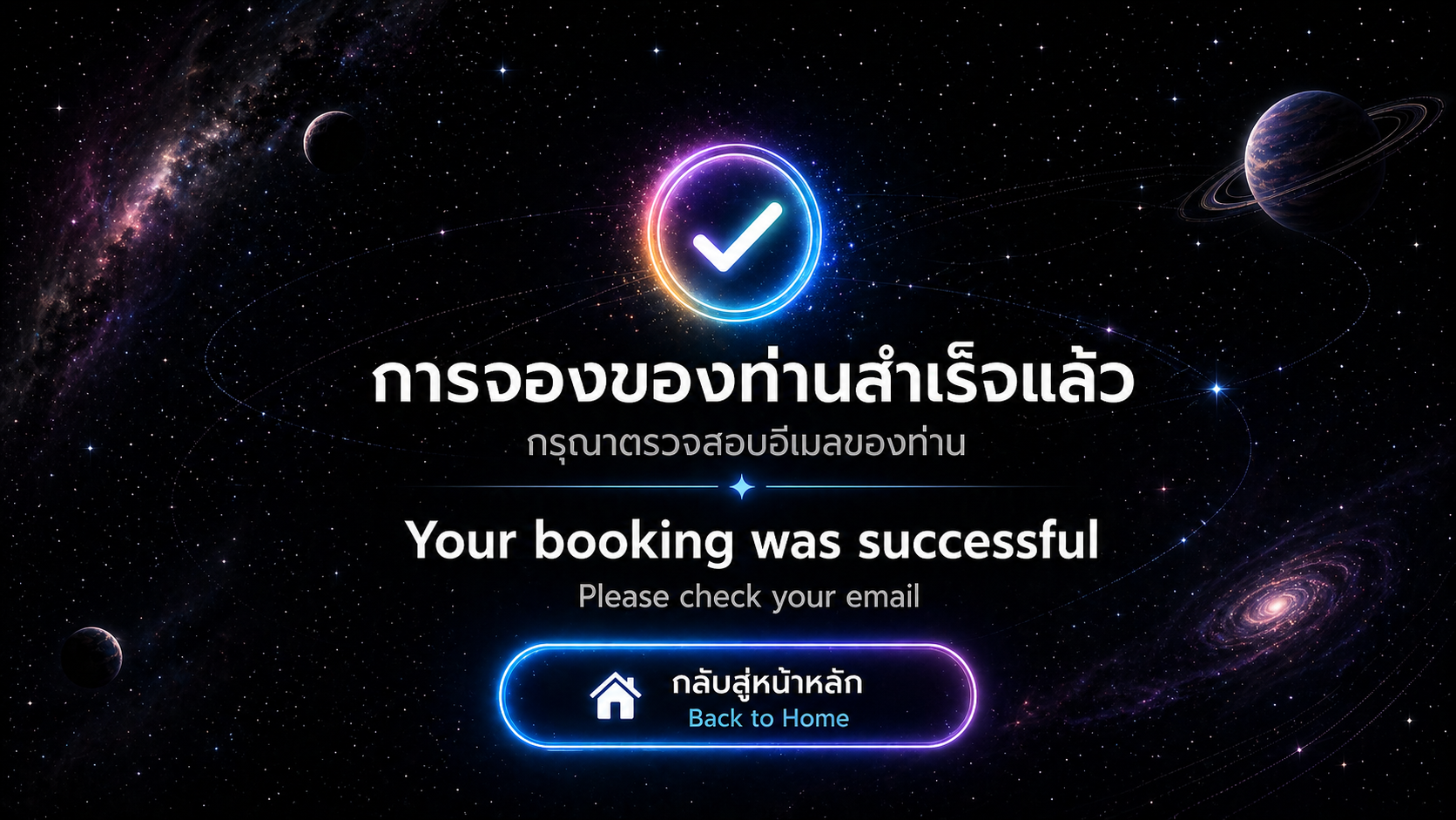 การจองของท่านสำเร็จแล้ว กรุณาตรวจสอบอีเมล